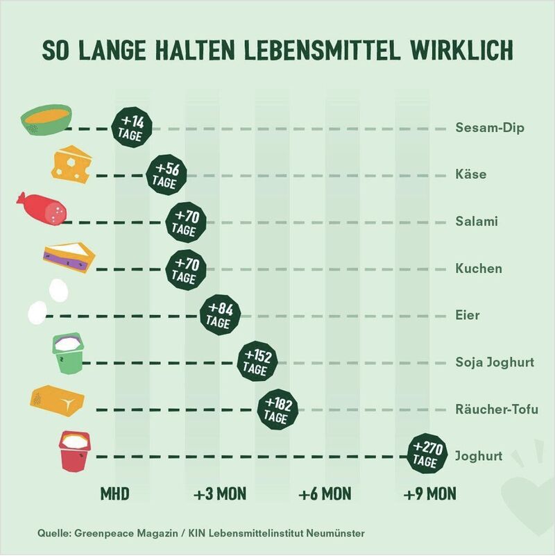 Wichtig: Das Mindesthaltbarkeitsdatum (MHD) darf nicht mit dem Verbrauchsdatum verwechselt werden! MHD heißt mindest haltbar bis und Produkte mit Verbrauchsdatum darf man nicht mehr essen nach Ablauf.